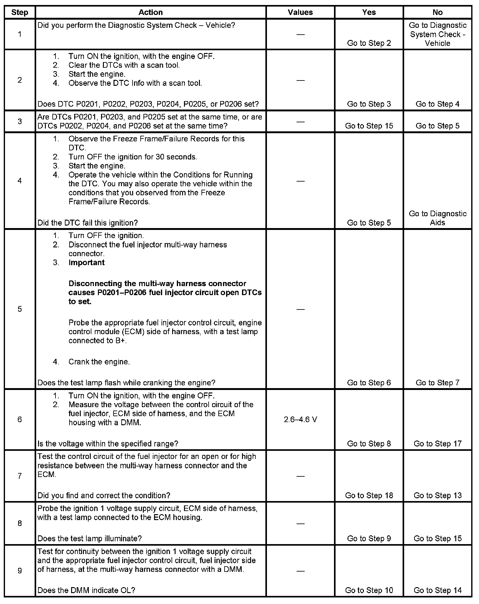 - DTC P0201 Injector 1 Control Circuit