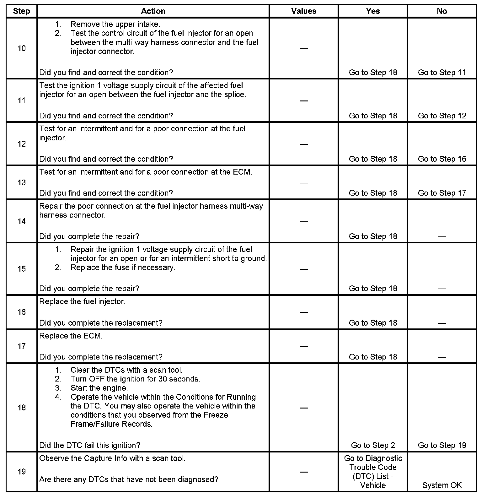 - Performing the fuel injector coil test may help isolate an intermittent condition. Refer to Fuel Injector Solenoid Coil Test. Fuel Injector Solenoid Coil Test