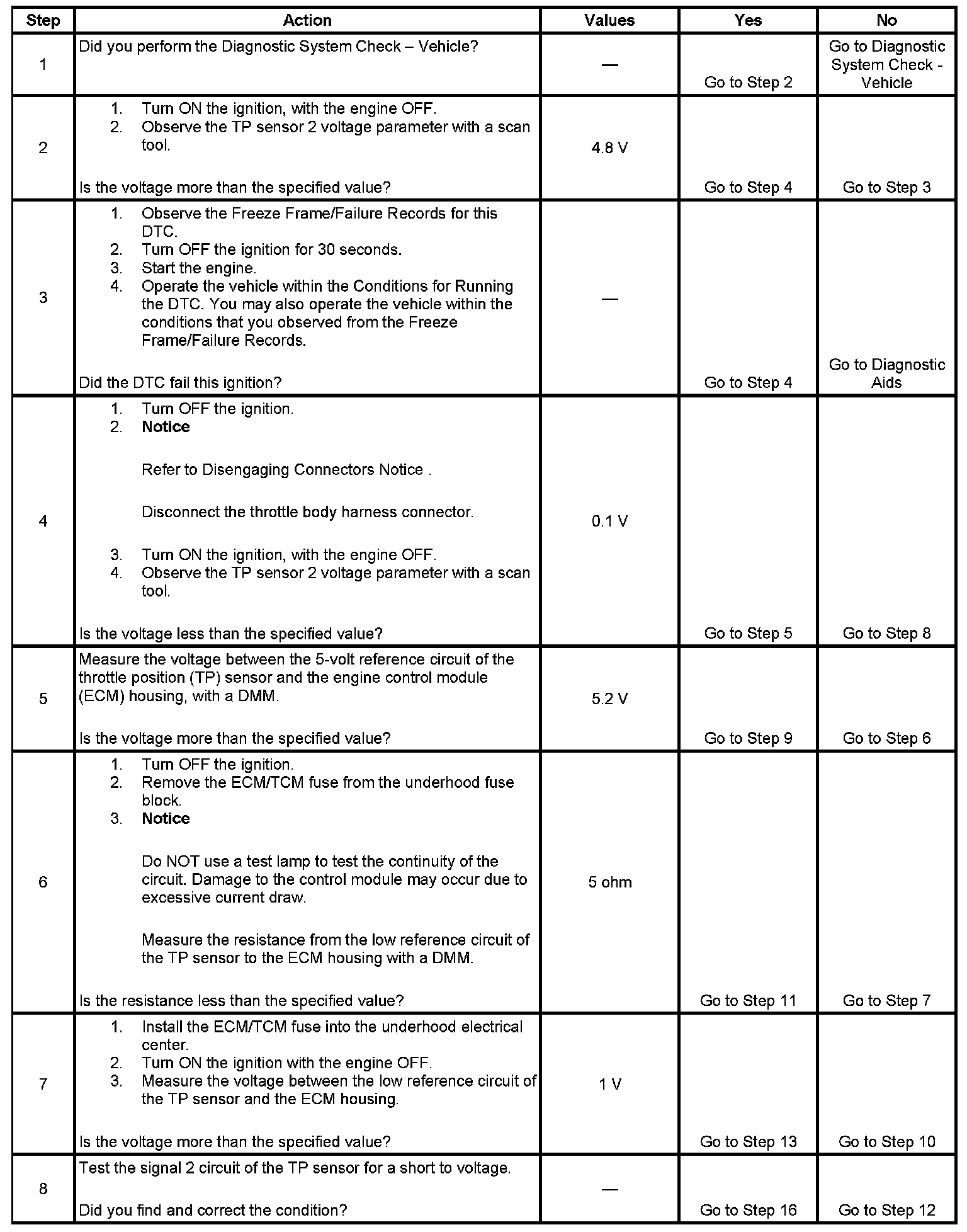 DTC P0223 Throttle Position (TP) Sensor 2 Circuit High Voltage