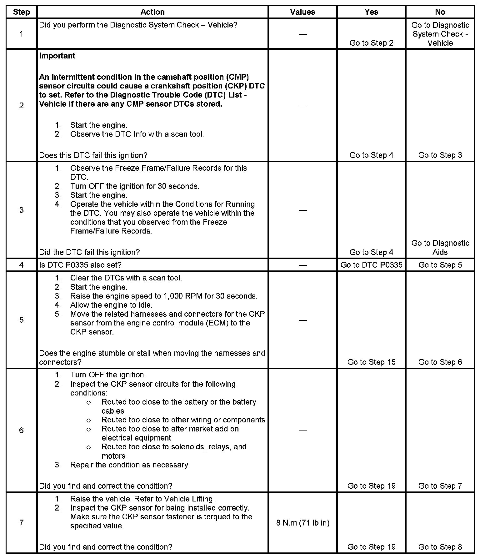 7. This step is testing if the CKP sensor is installed correctly. A CKP sensor that is not fully seated, may cause this DTC to set.