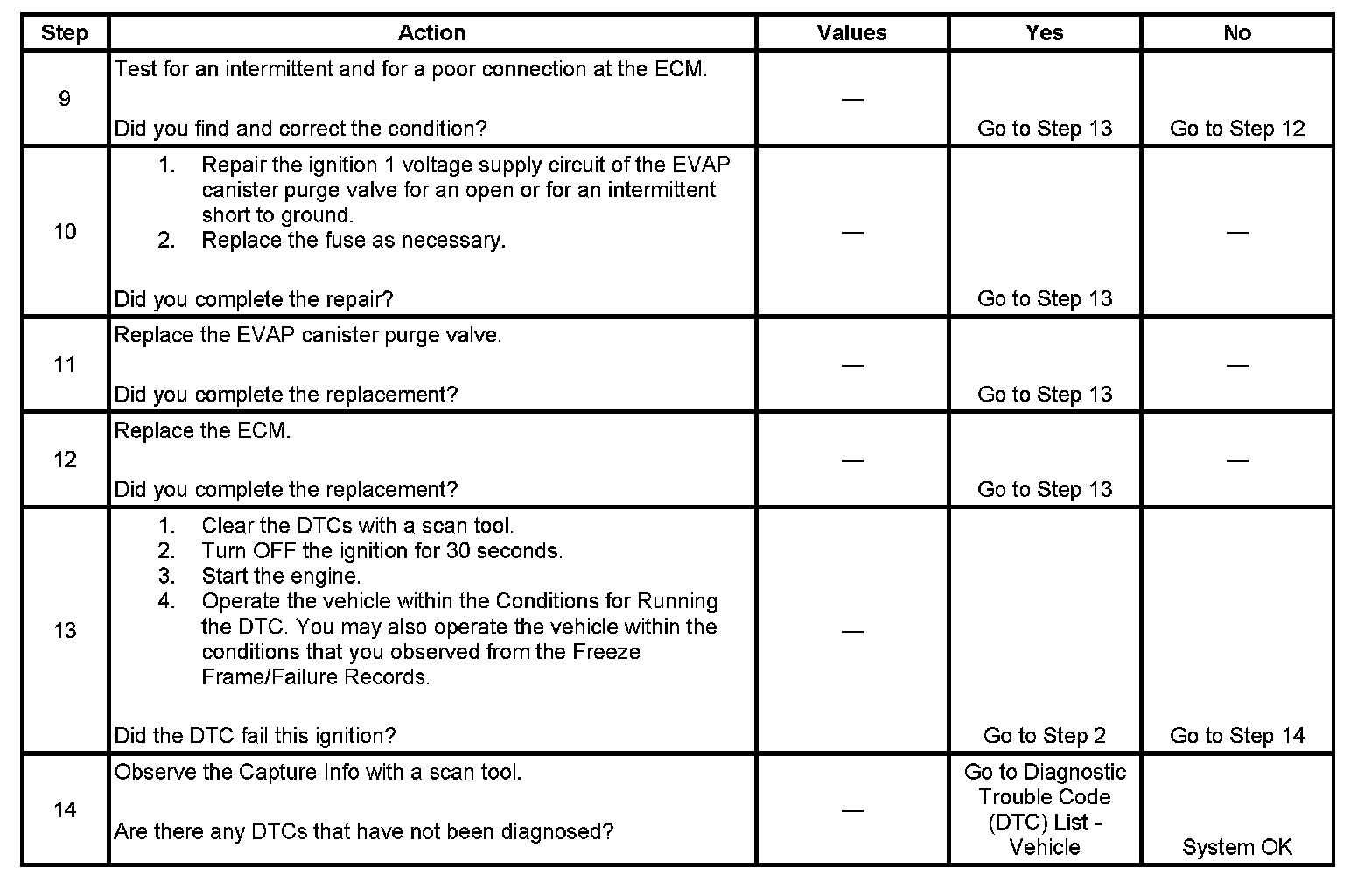 - A current DTC, Last Test Failed, clears when the diagnostic runs and passes.