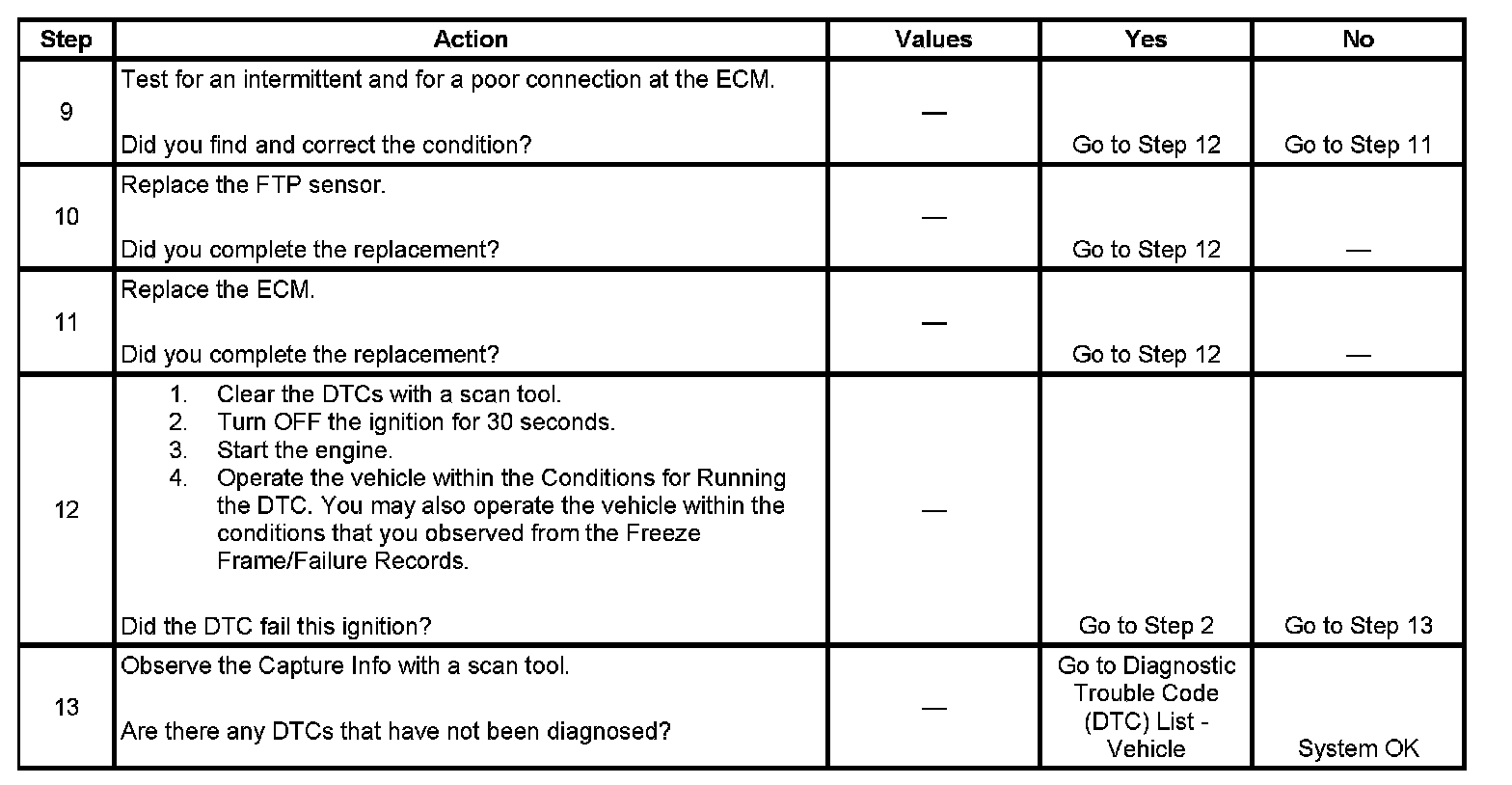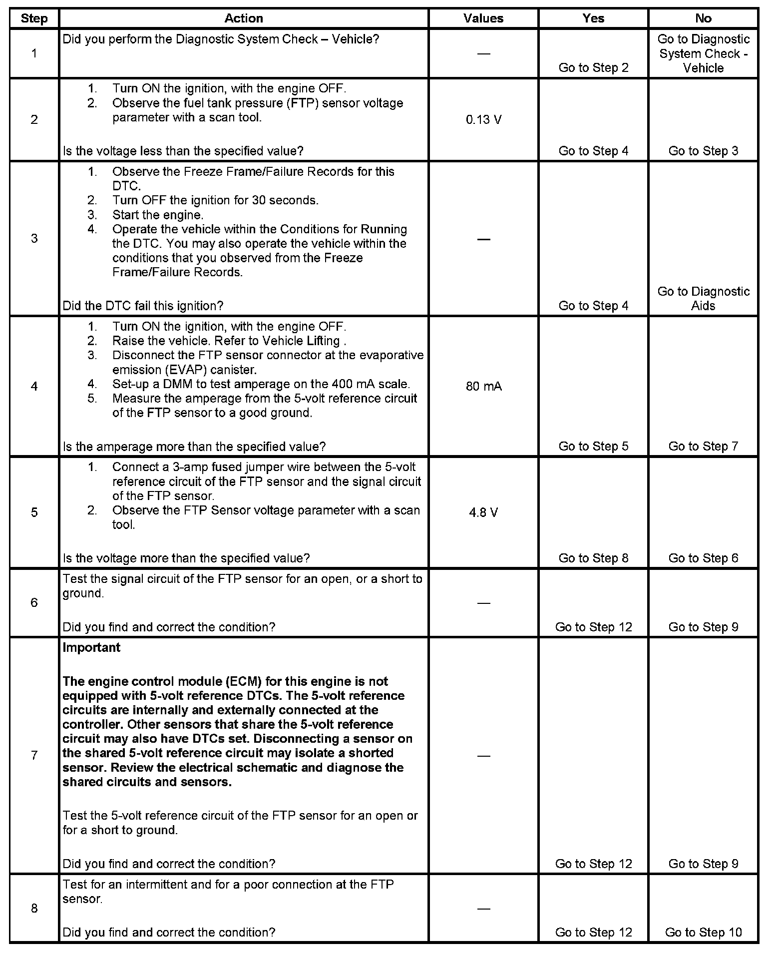 - The ECM detects the FTP sensor signal voltage is less than 0.13 volt.