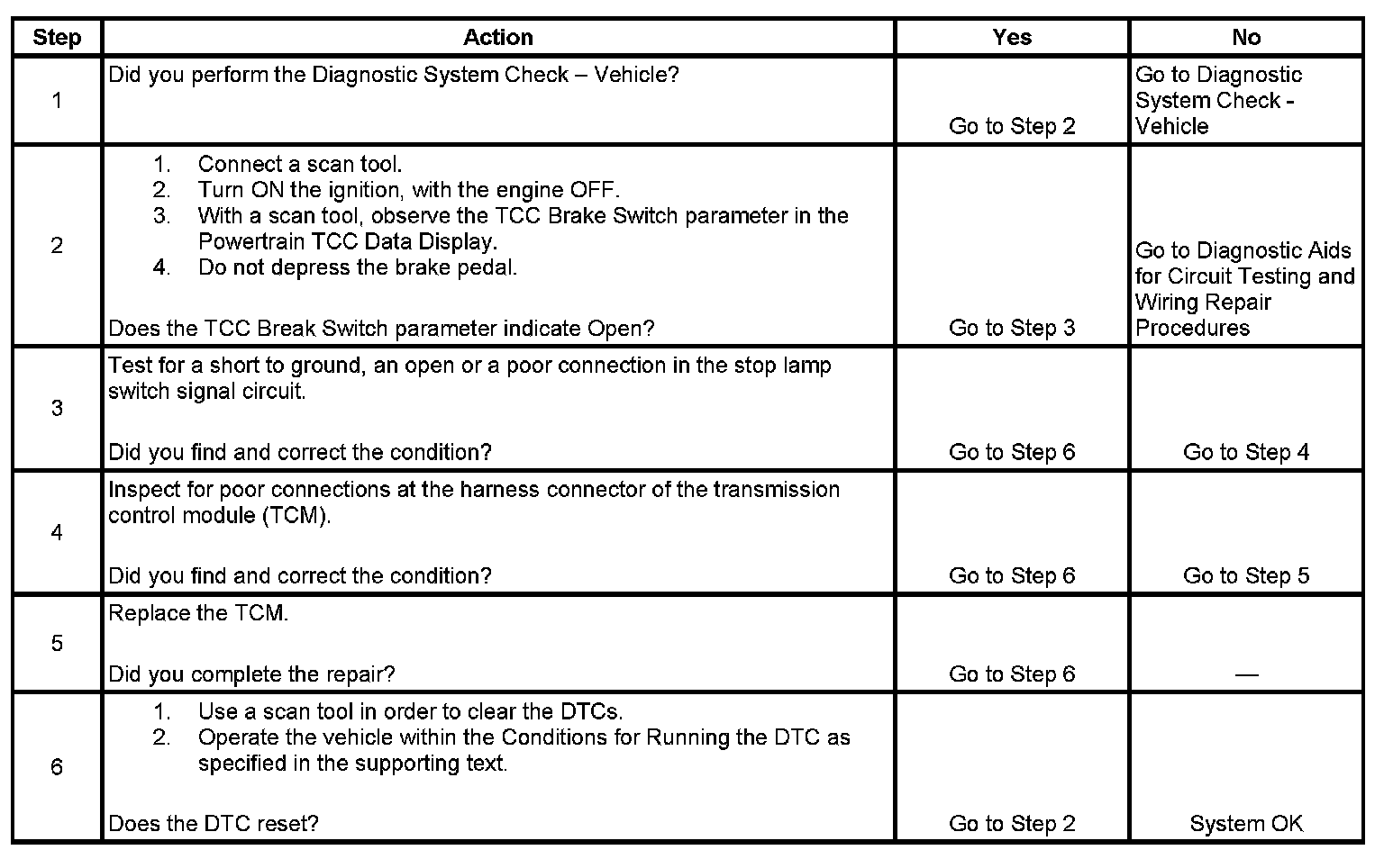 The TCM detects an open or short to ground on the stop lamp switch signal circuit when the voltage should be present.