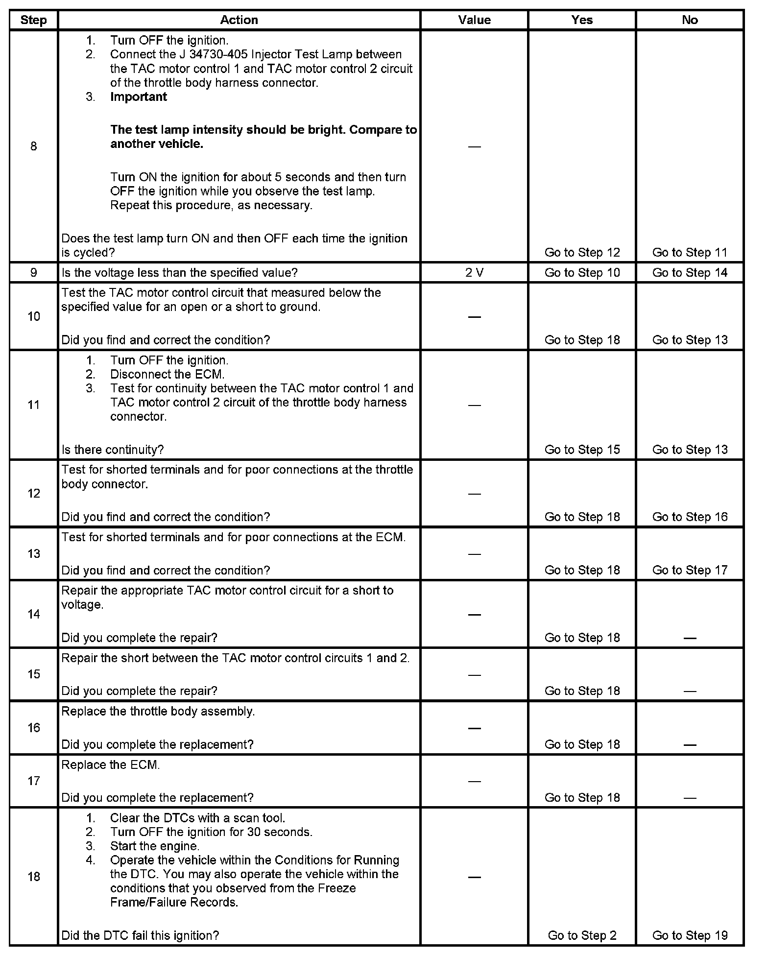 - The scan tool has the ability to operate the throttle control system using the TP function located in the TAC System menu. This function operates the throttle valve through the entire range in order to determine if the TAC system operates correctly. Additional DTCs may set using this function.