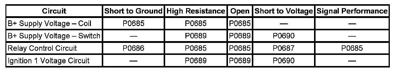 - A condition with the main relay will set multiple DTCs. The DTCs listed in the table will only set if a condition exists with the main relay.
