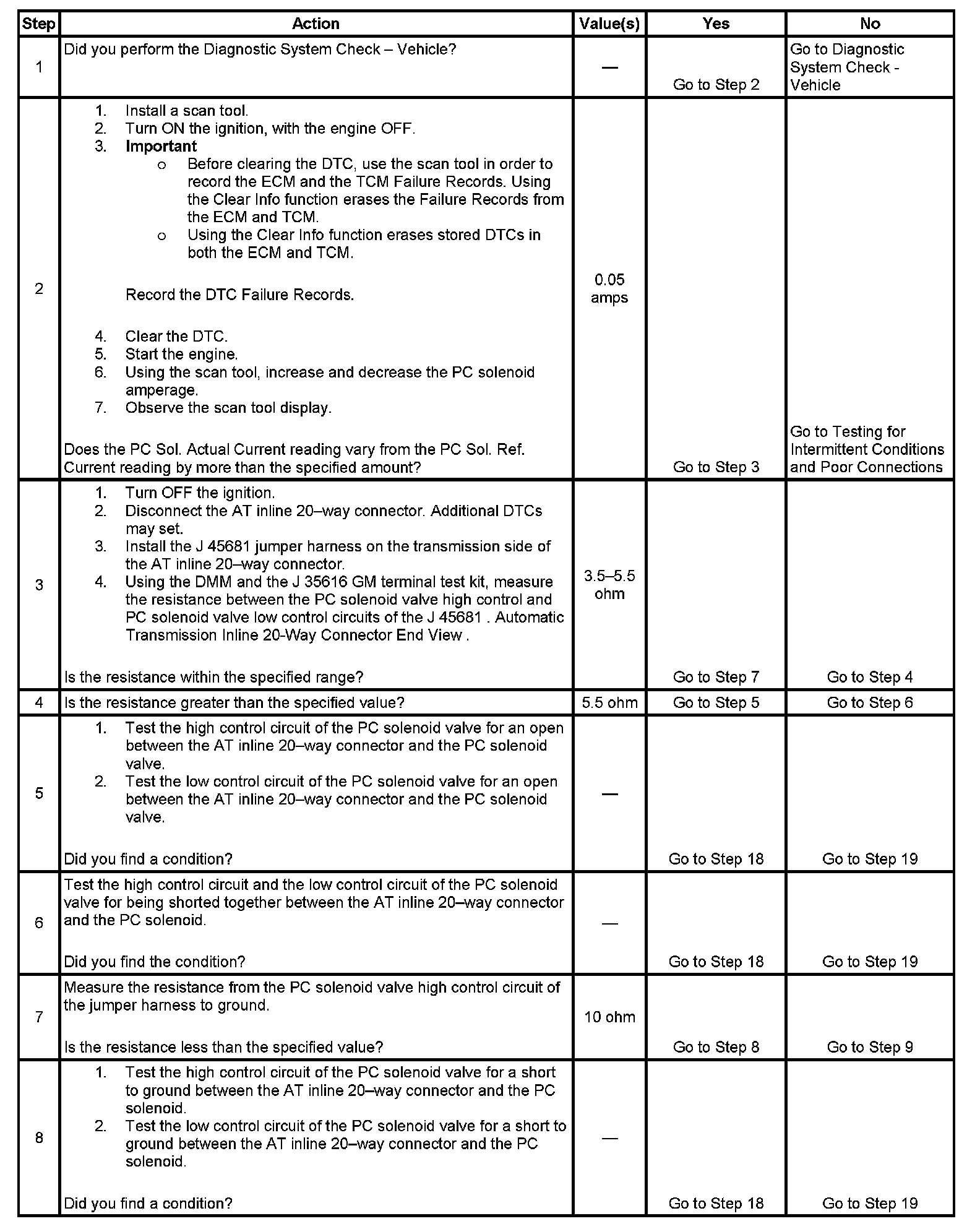 2. This step verifies the ability of the TCM to command the PC solenoid valve.