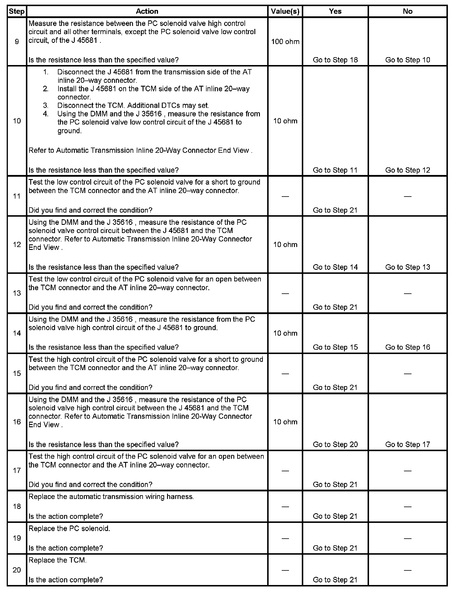 3. This step verifies that the automatic transmission wiring harness and the PC solenoid have correct resistance.