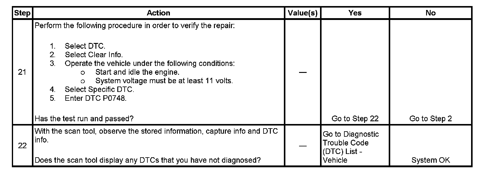 If the TCM detects a continuous open, short to voltage or short to ground in the PC solenoid circuit, then DTC P0748 sets. DTC P0748 is a type C DTC.