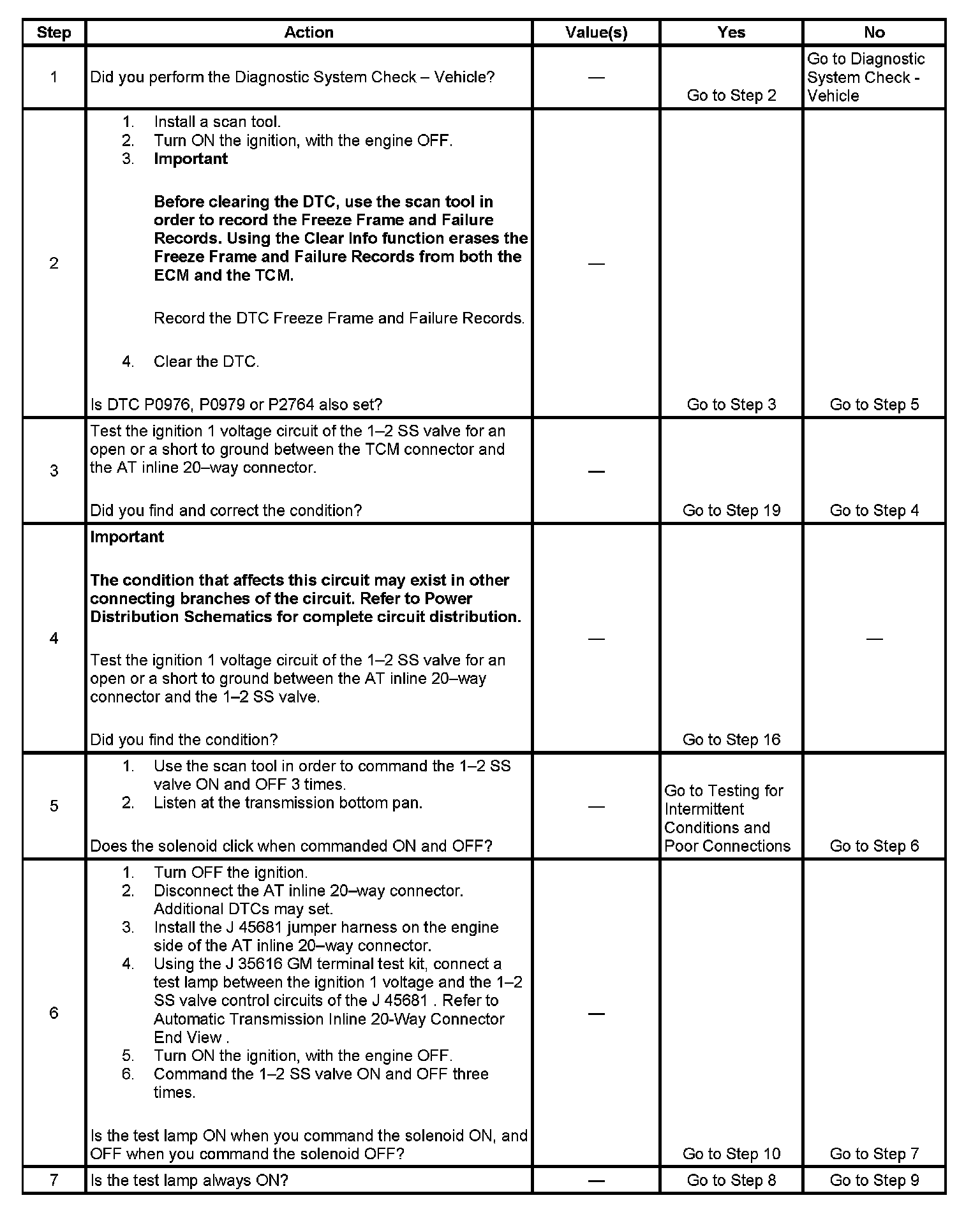 DTC P0973 1-2 Shift Solenoid (SS) Control Circuit Low Voltage
