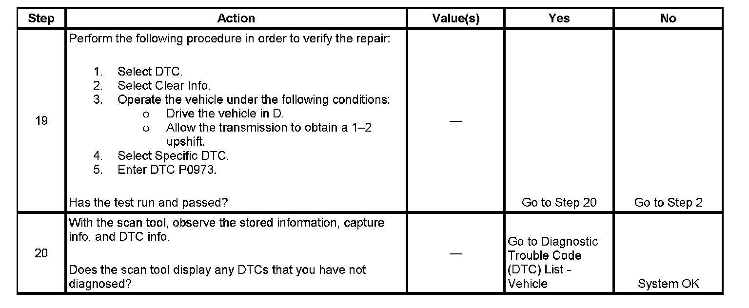 ^ The TCM stores DTC P0973 in TCM history.