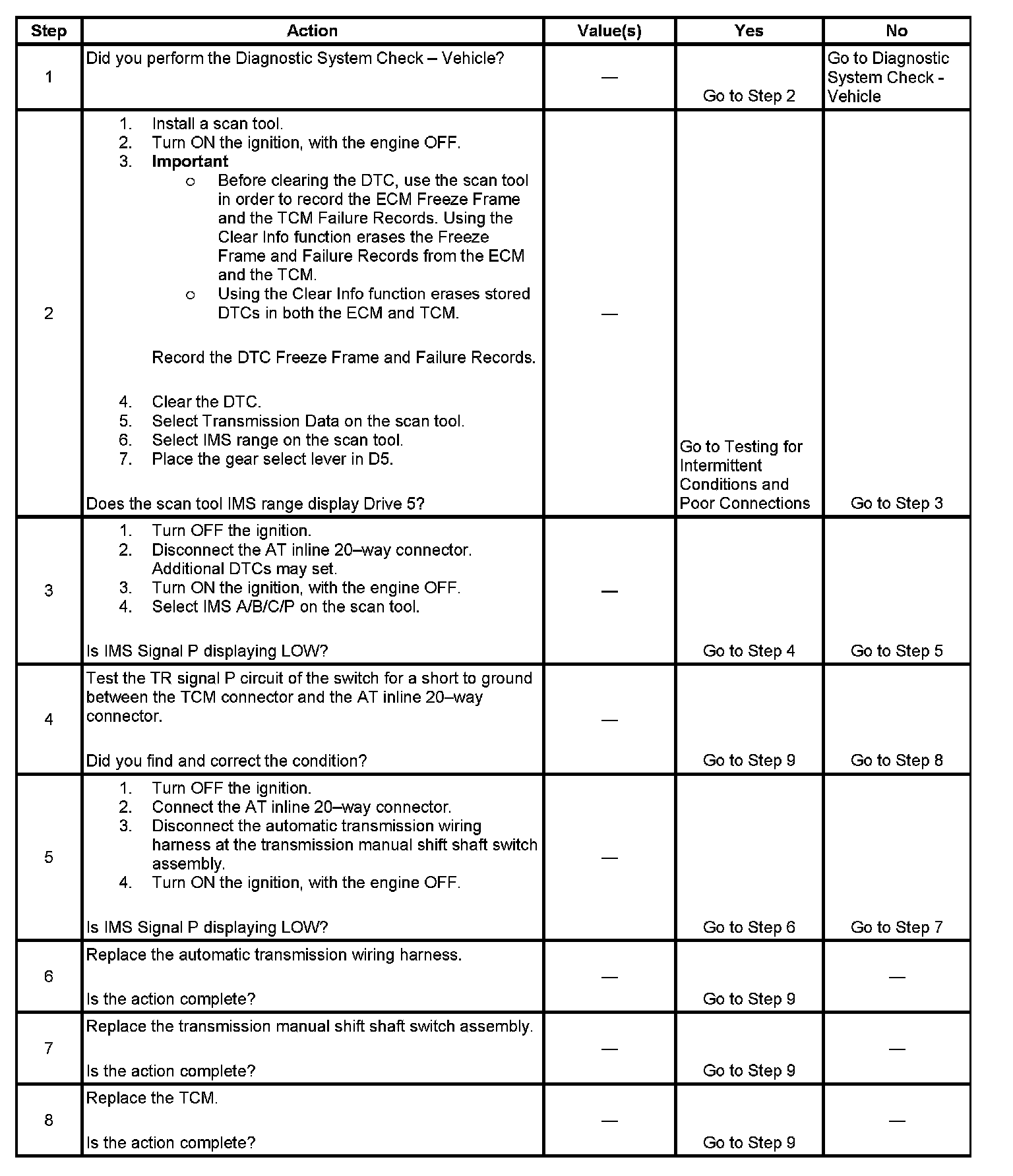 ^ The TCM requests the ECM to illuminate the malfunction indicator lamp (MIL) during the second consecutive trip in which the Conditions for Setting the DTC are met.