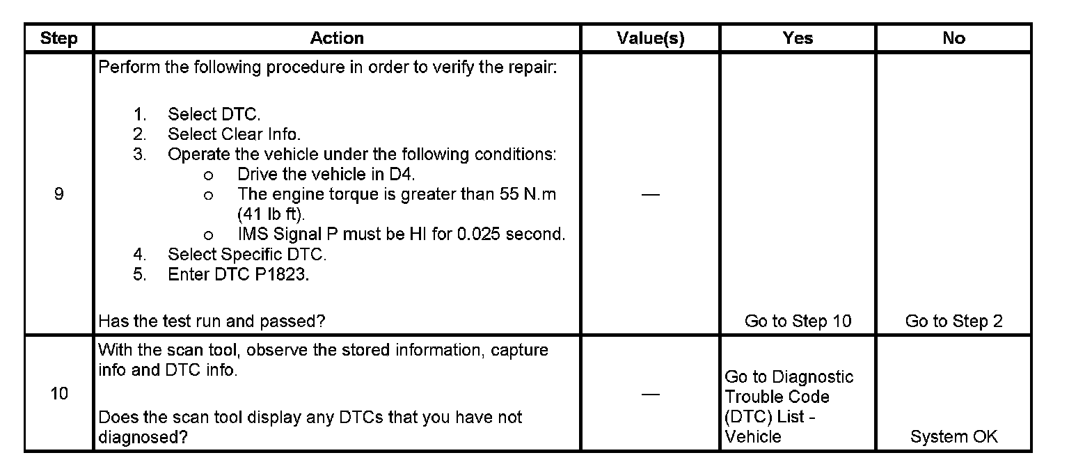 ^ The TCM stores DTC P1823 in TCM history.