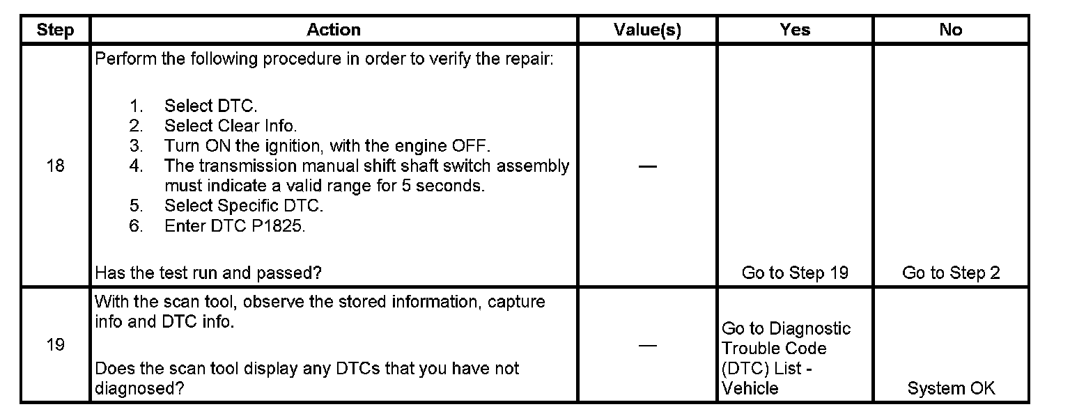 ^ The TCM stores DTC P1825 in TCM history.