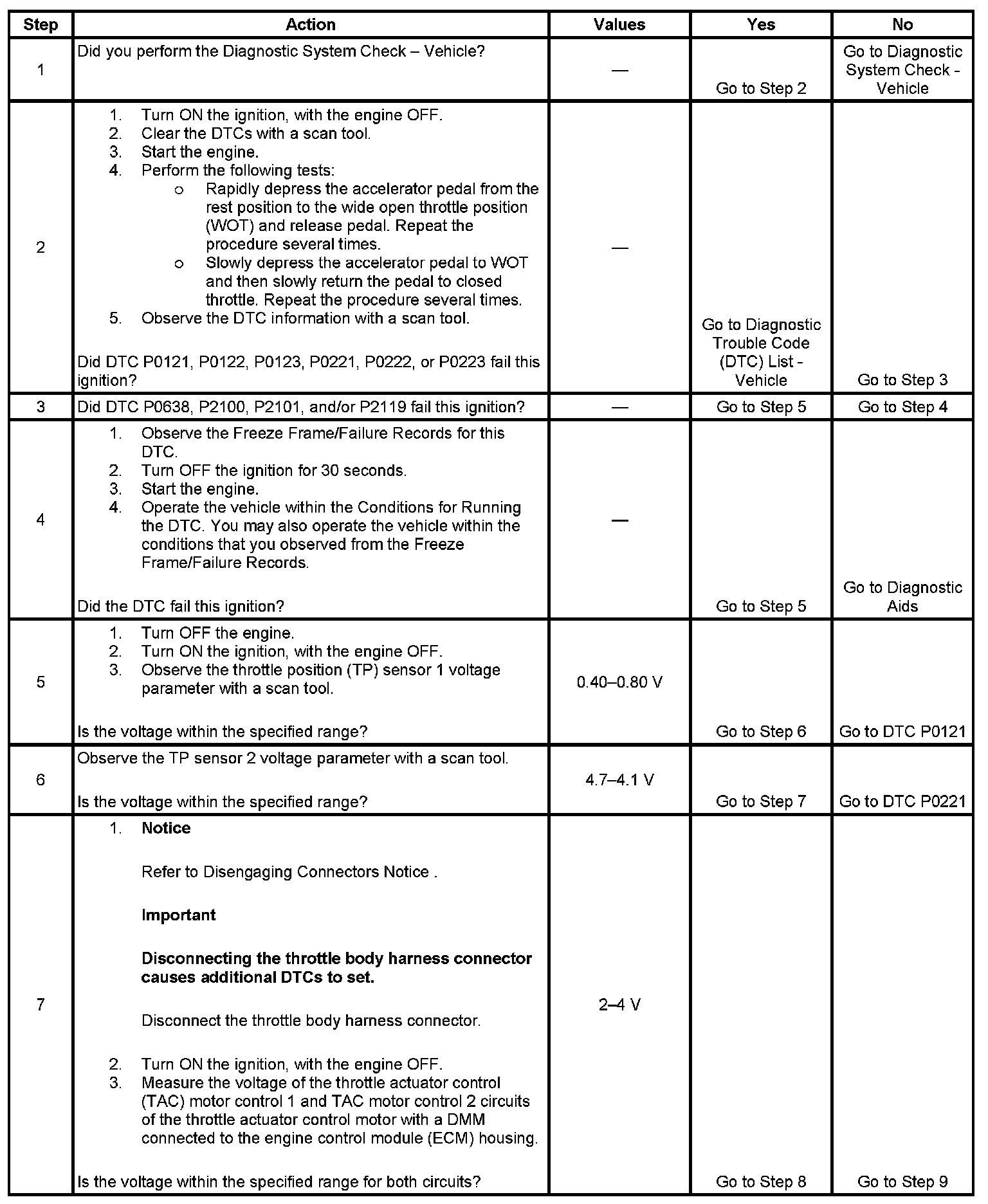 2. This step determines if the condition exists. A TP sensor DTC may cause this DTC to set.