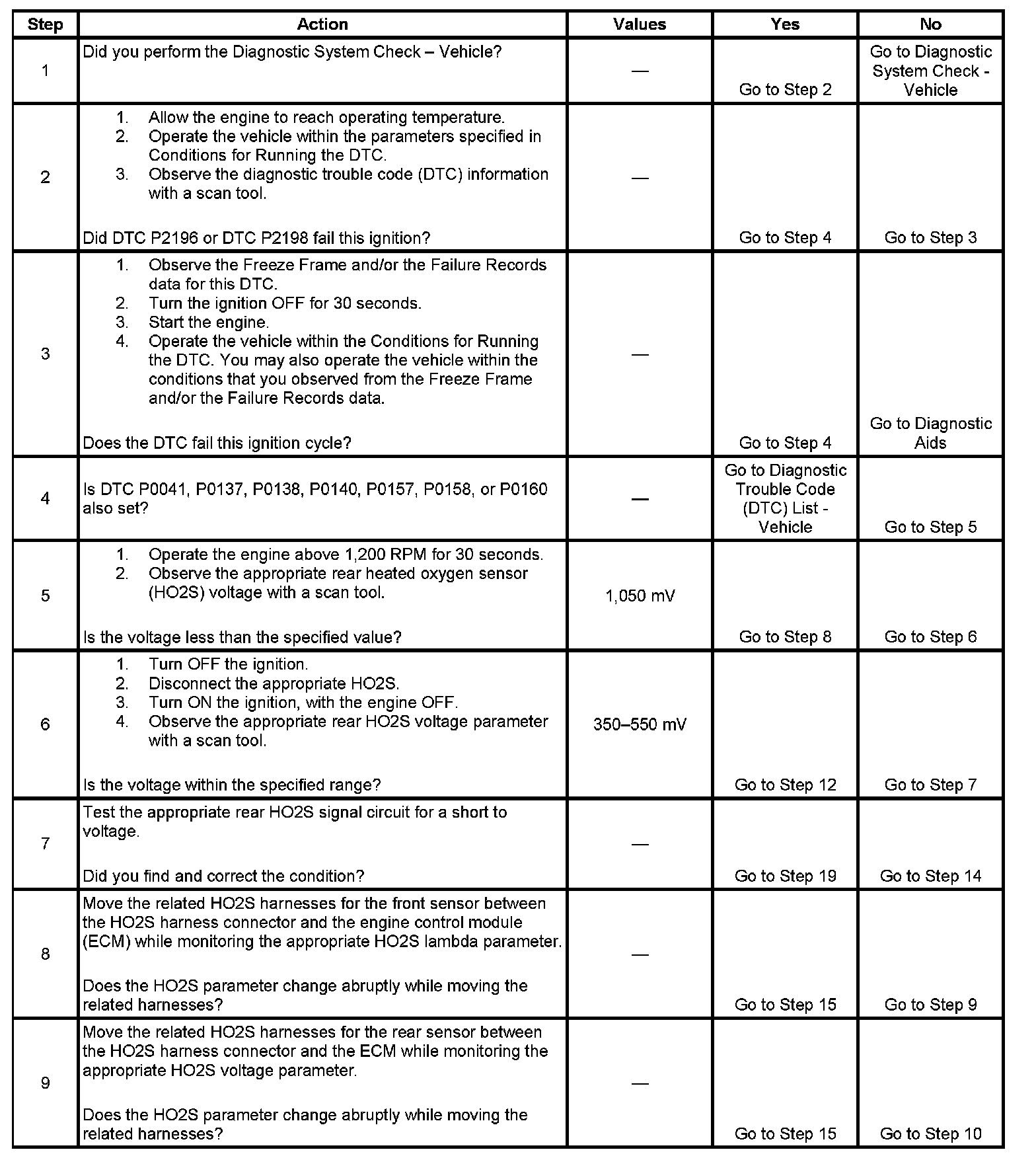 - Before the ECM can report DTC P2196 or P2198 failed, DTCs P0137, P0138, P0140, P0141, P0157, P0158, P0160, P0161, P2270, P2271, P2272, and P2273 must run and pass.