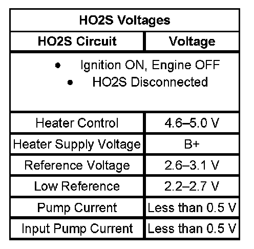 - The table illustrates the typical voltages for the HO2S circuits.