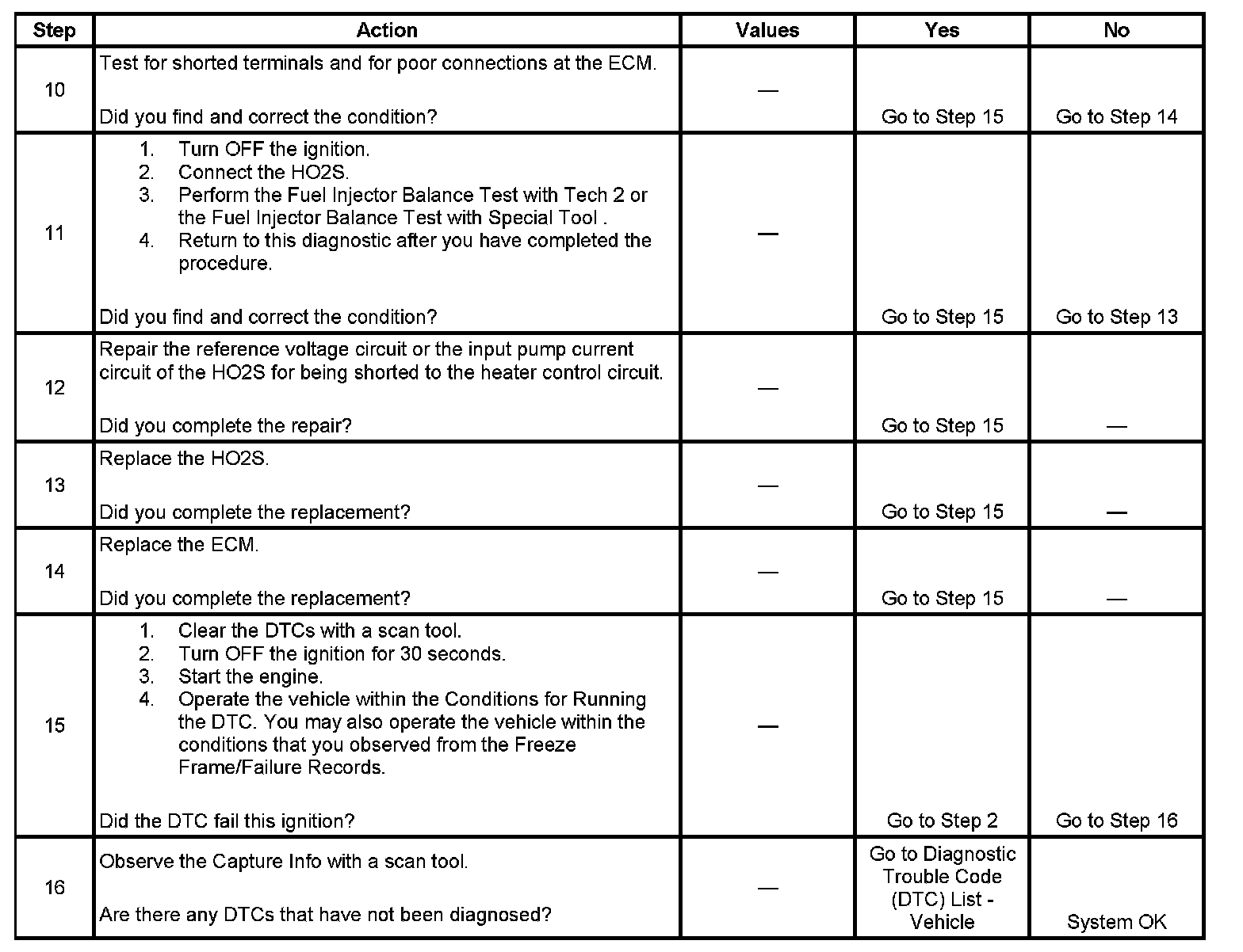 2. This step determines if the condition exists. If there is a condition with the HO2S circuits, the ECM commands open loop for the applicable sensor.