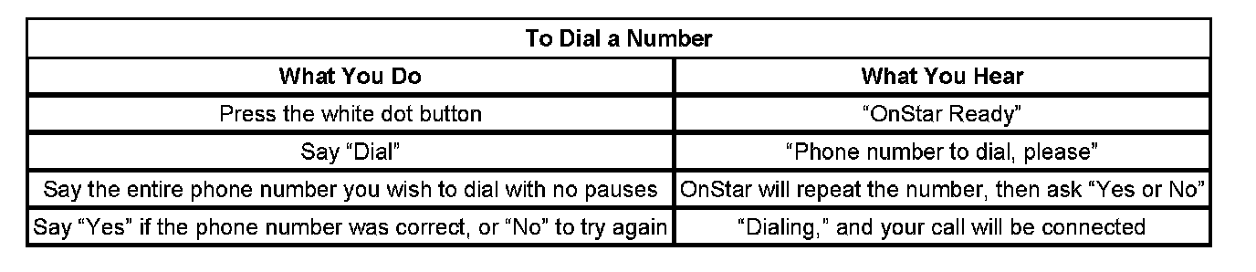 After 3 unsuccessful tries, or if you simply like it better, you can use the "Digit Dial" command to input digits one at a time. Digit Dial is set up to dial phone numbers like previous OnStar Personal Calling Systems.