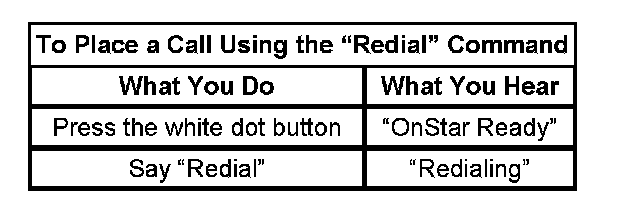 The hands free, OnStar(R) personal calling (OPC) cellular phone feature is an additional option to the OnStar(R) system. This feature is already embedded within the vehicle communication interface module (VCIM), however, it must be activated by an OnStar(R) advisor. This is done most often during the initial OnStar(R) configuration, if the home location of the vehicle is in a geographic area where OnStar(R) personal calling is available. In the event this feature is not enabled, customers may connect to the OnStar(R) Call Center by pressing the blue OnStar(R) button, and asking an advisor if OPC is available in their area. Users of the Generation 6.1 OnStar(R) system can verify the system has been configured for OnStar(R) Personal Calling by pressing the answer/end call button, waiting for the system to respond "OnStar Ready" then speaking the word "dial." If the system responds with a failure message, the system has not been configured for OPC. All other responses confirm that OPC has been enabled.