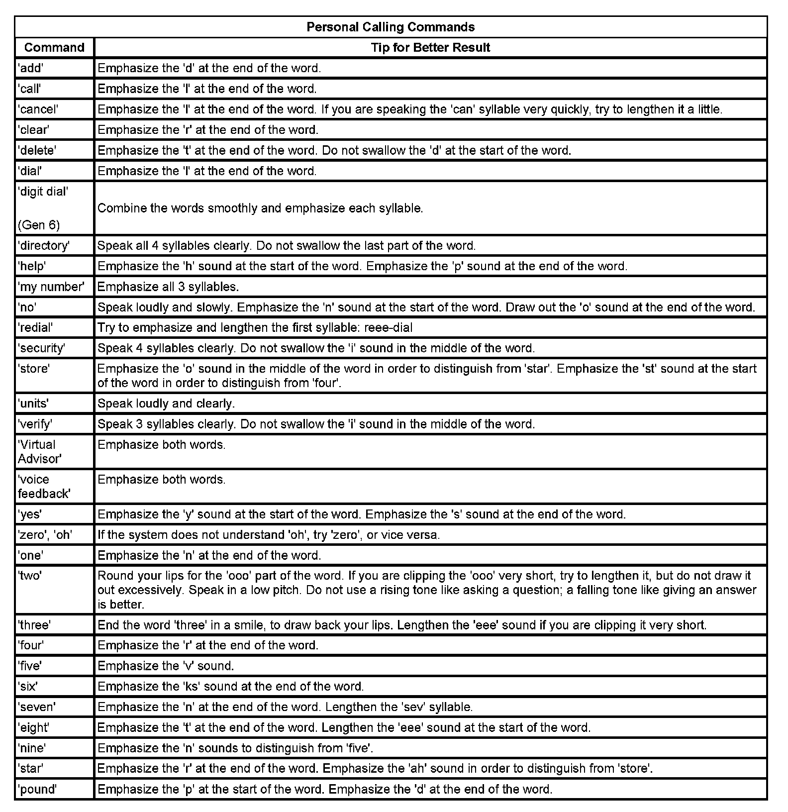 The OnStar(R) speech recognition systems use speech technology that is designed to understand a wide range of American English speakers. Although there is no one right way to speak English, the system will work best when users try to modify their pronunciation should they encounter difficulty. Users who do not obtain good results are advised to try the tips and workarounds found.
