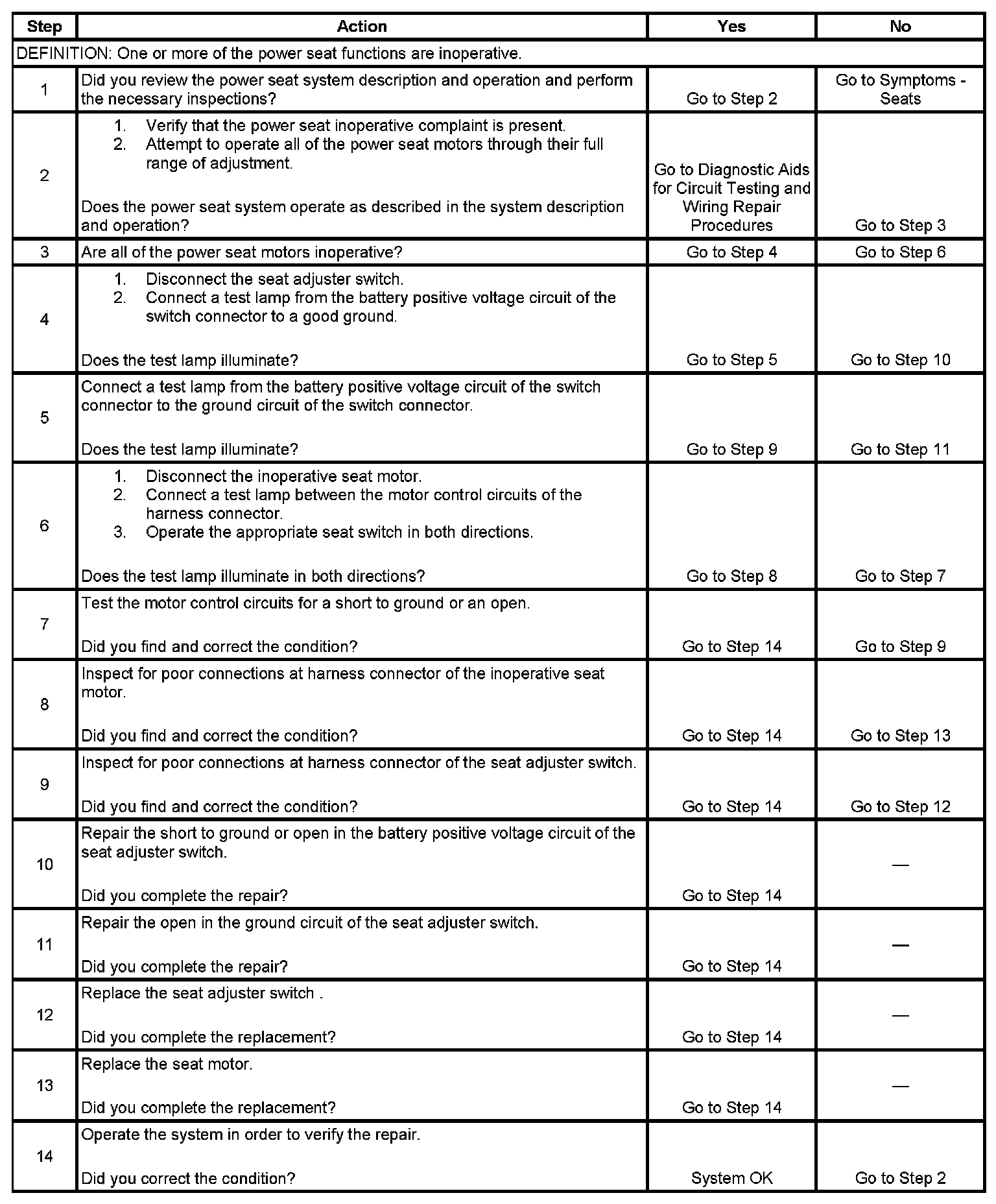Power Seat Inoperative (Without RPO Code A45)