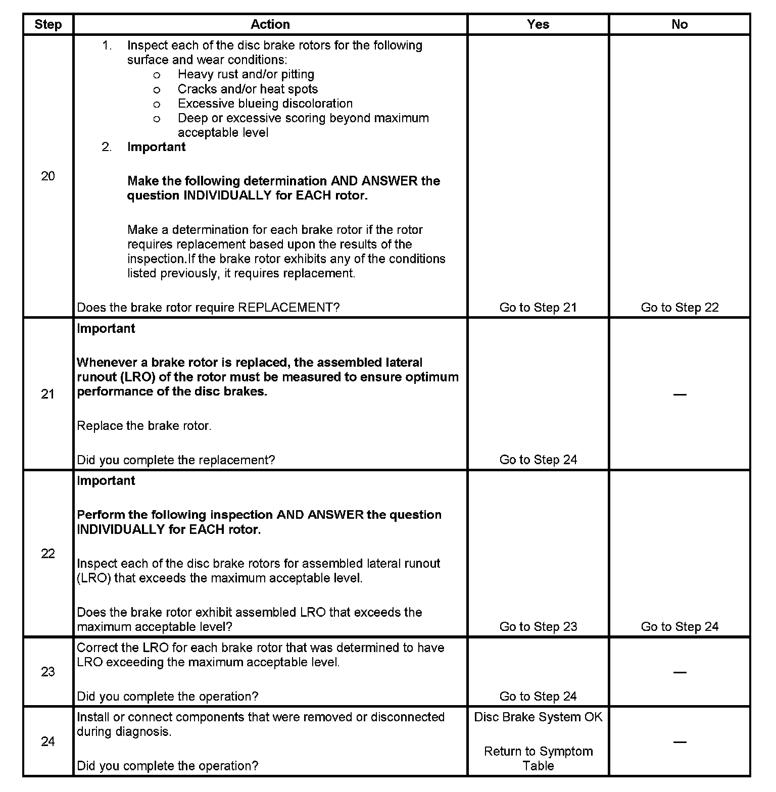 22. Disc brake rotor assembled lateral runout (LRO) that exceeds the maximum acceptable level can lead to thickness variation.