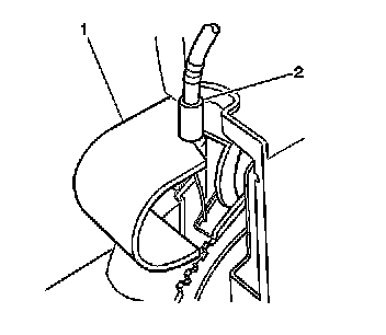 2. Install the park brake release cable housing (2) to the park brake pedal assembly (1).
