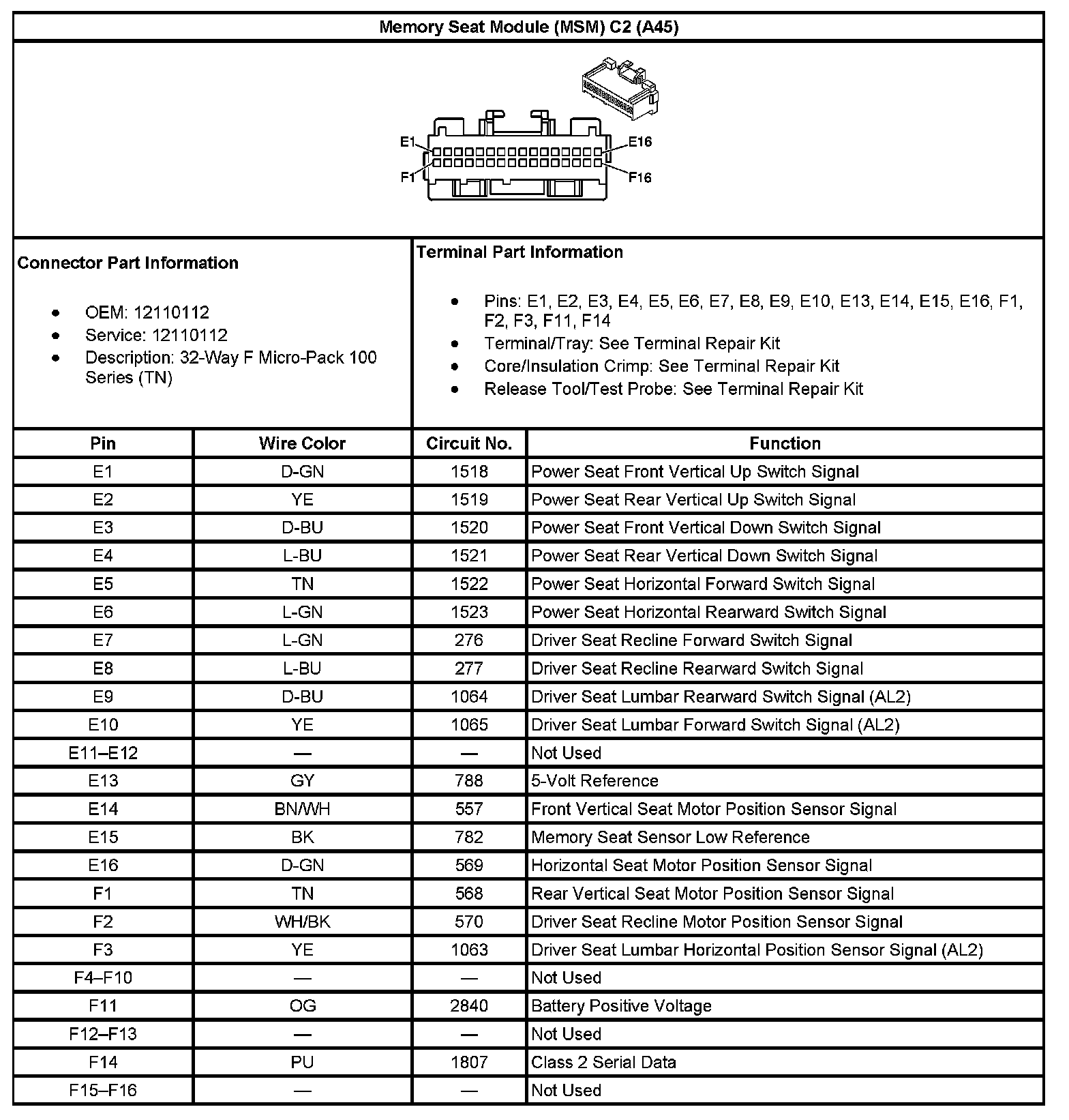 Memory Seat Module (MSM) C1 (With RPO Code A45):