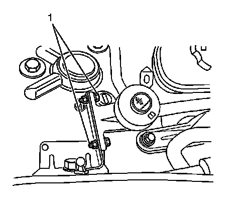 2. If equipped with a manual transmission, remove the clutch master cylinder reservoir bolts (1).