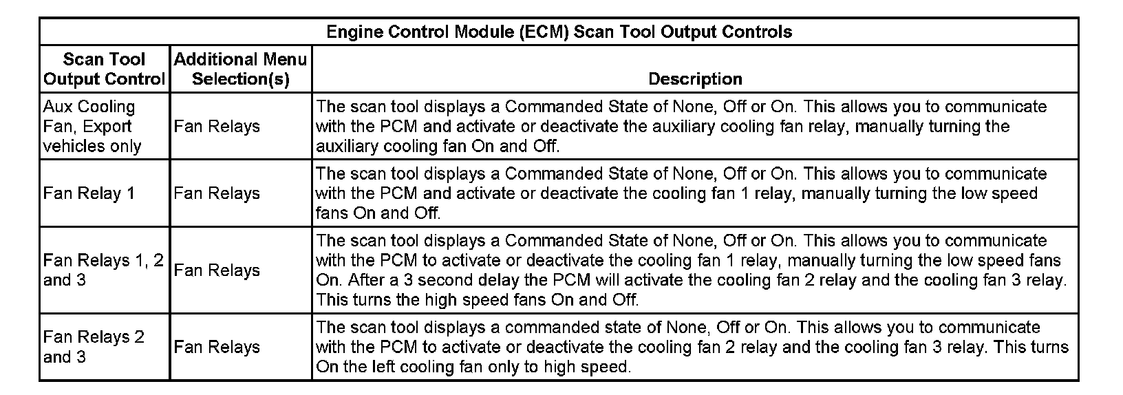 Engine Control Module (ECM) Scan Tool Output Controls