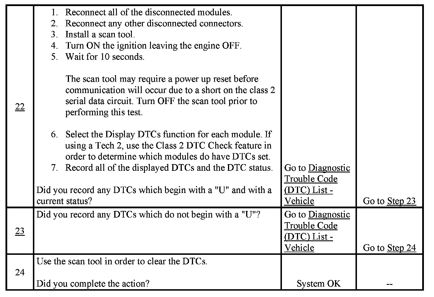 22. If there are no current DTCs that begin with a "U", the communication malfunction has been repaired.