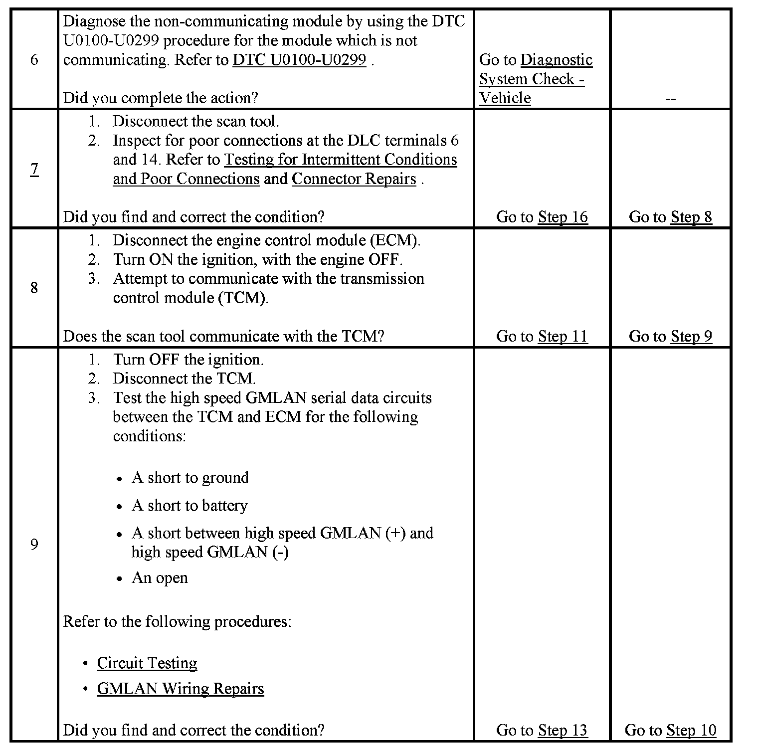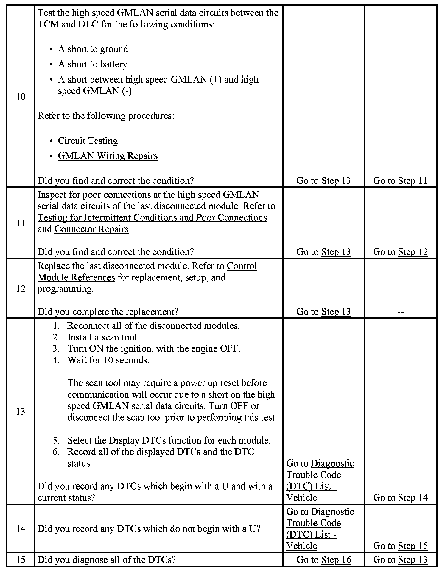 2. A partial malfunction in the high speed GMLAN serial data circuits uses a different procedure from a total malfunction of the high speed GMLAN data circuits. The following modules communicate on the high speed GMLAN serial data circuits: