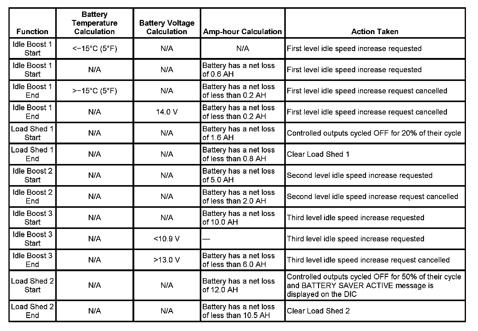 The PMM will either request an increase in the engine idle speed to the ECM or the PMM will cycle or turn OFF loads, called the load-shed function, in order to preserve the vehicle electrical system operation. The criteria used by the PMM to regulate this electrical load management are outlined.