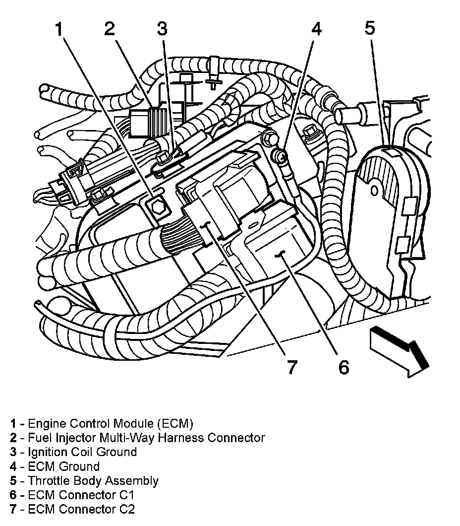 The ECM is in the engine compartment. The ECM is the control center of the engine controls system. The ECM controls the following components: