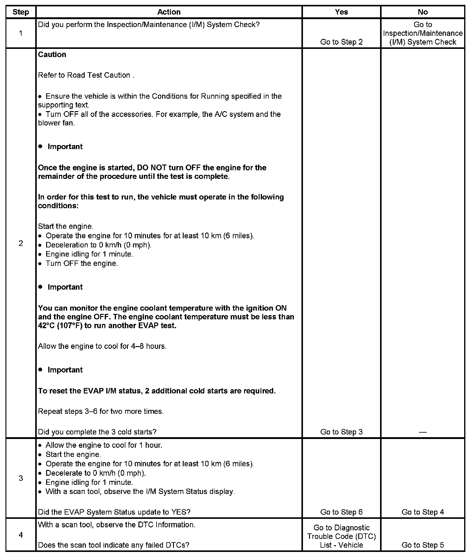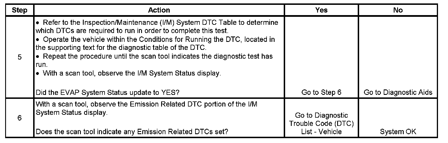- The first failure of a type B DTC does not constitute a final determination of pass or fail, and will not update the I/M System Status to YES. A second and third trip is required, and all the conditions to run must be met in order for the test to run again. These conditions require a complete engine cool down before the EVAP I/M ready status changes to YES.