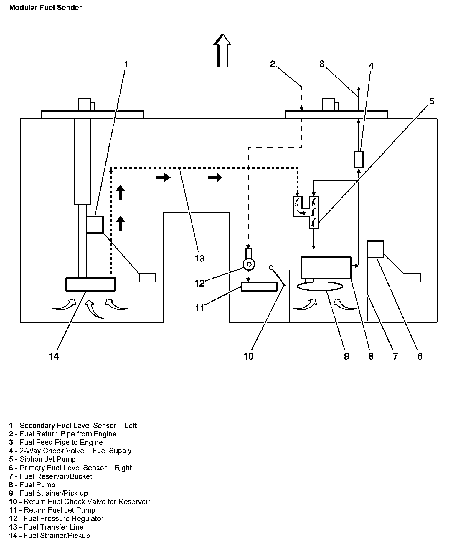 - The modular fuel sender assembly-The modular fuel sender assembly pumps fuel to the engine from the fuel tank.