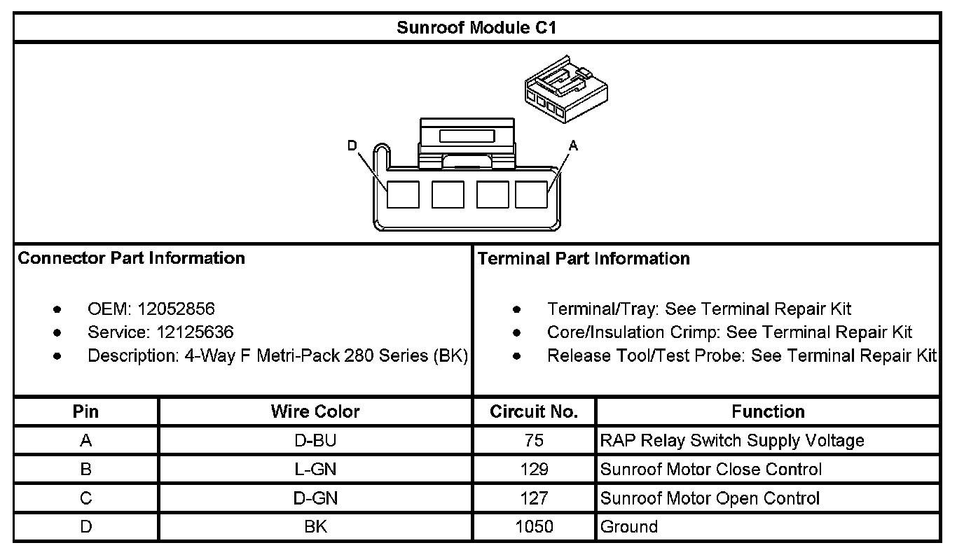 Sunroof / Moonroof Module: Diagrams
