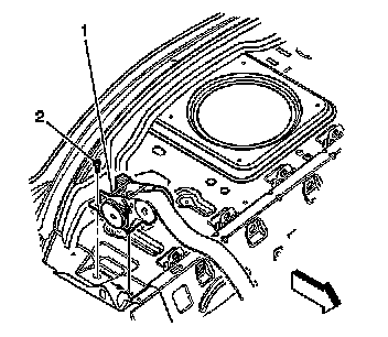 1. Install the rear shoulder belt retractor (1). Engage the tab on the retractor (1).
