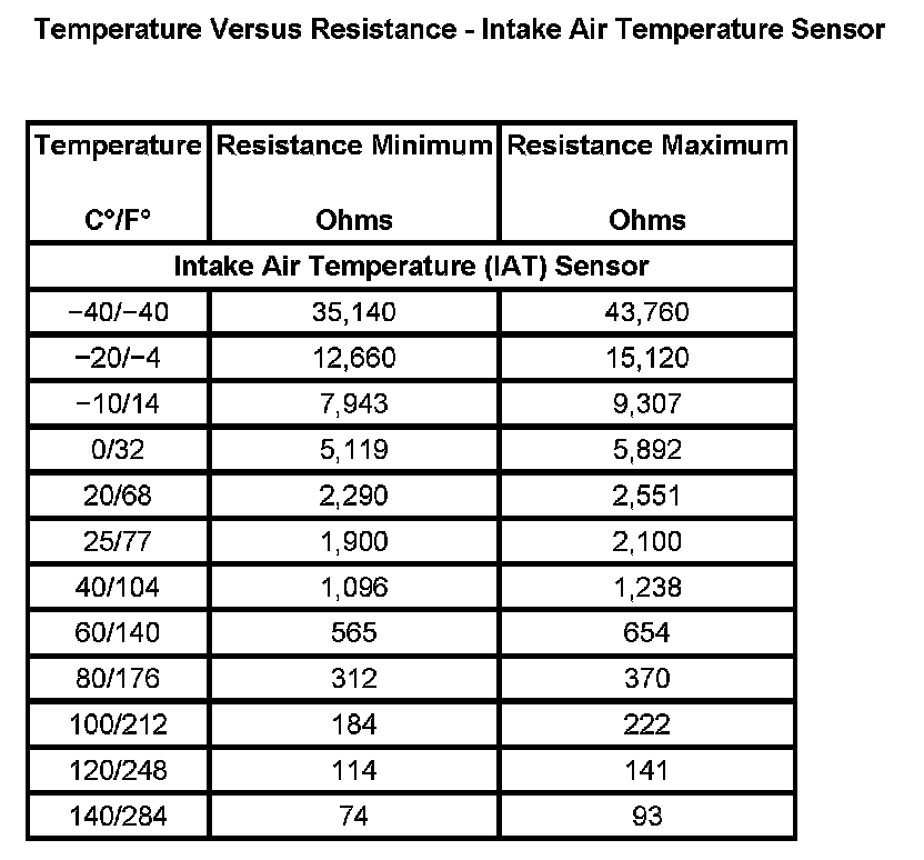 Temperature Versus Resistance - Intake Air Temperature Sensor: