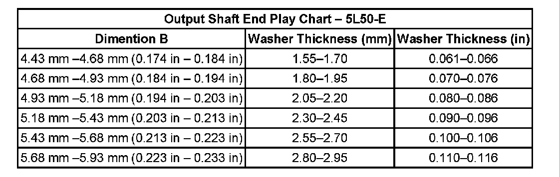 Output Shaft End Play Chart - (5L50-E):