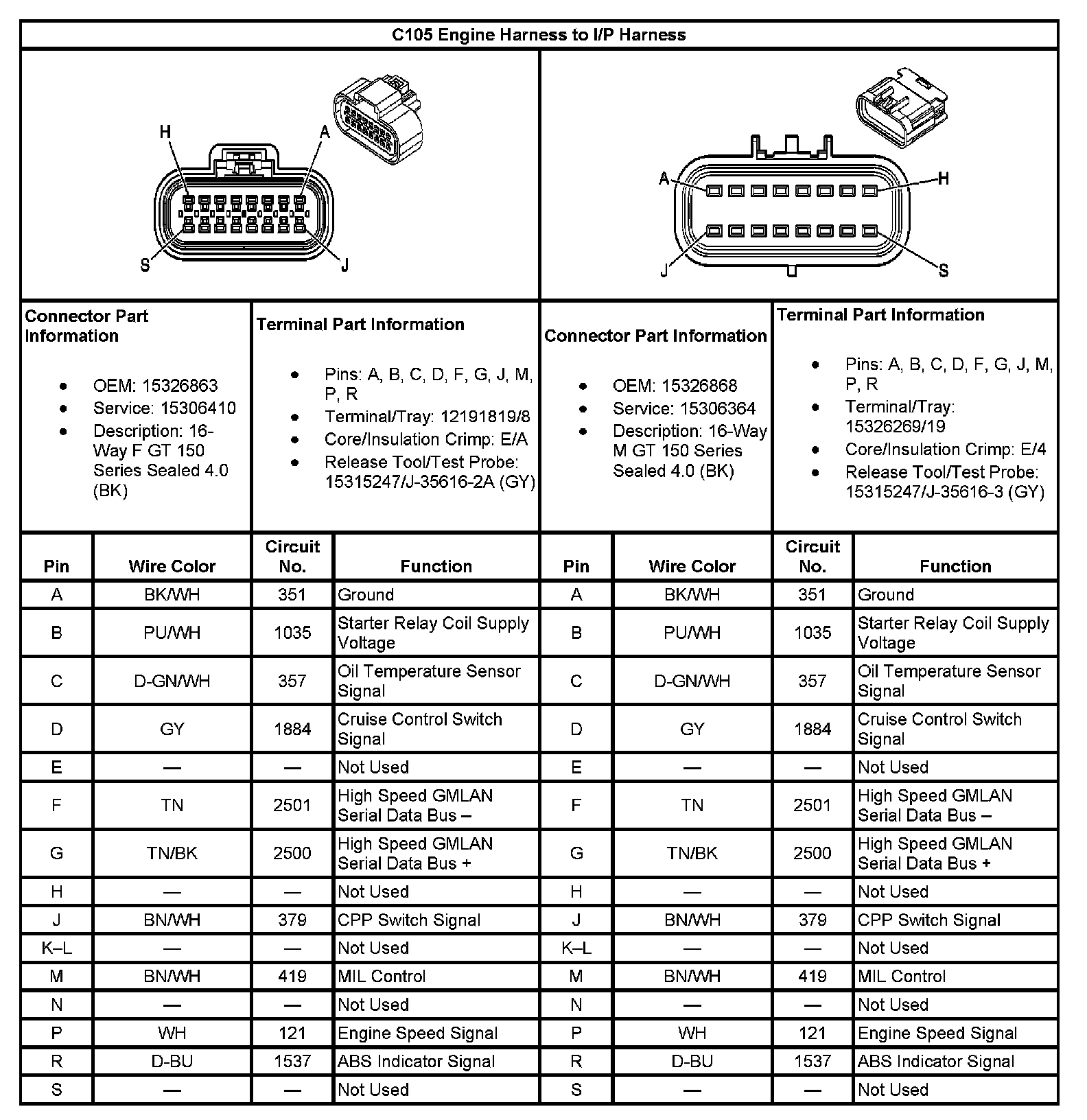 C105 Engine Harness To I/P Harness: