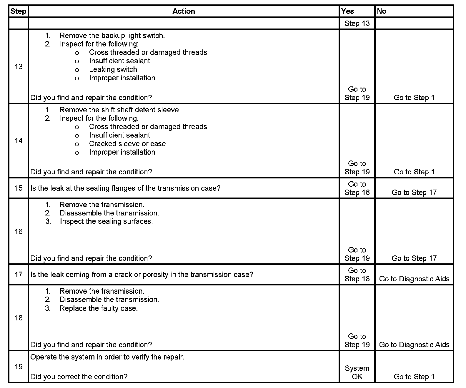 The number below refers to the step number on the diagnostic table.