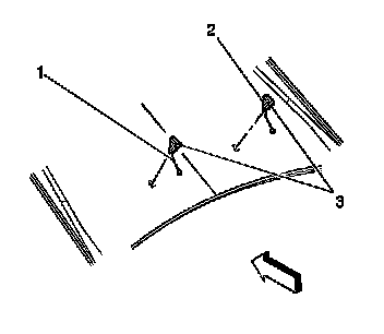 7. Push the washer nozzle (3), outward toward the windshield.