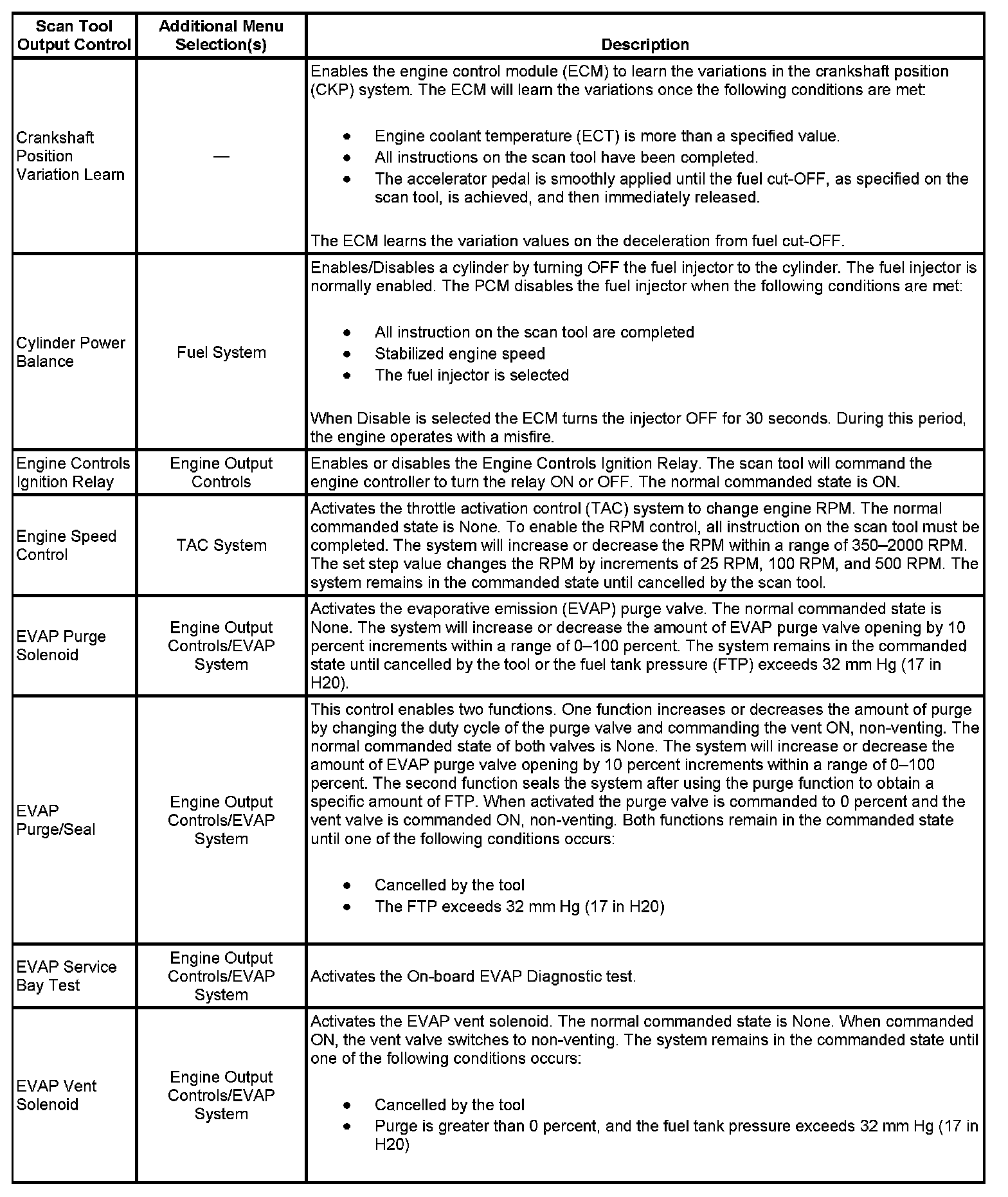 Scan Tool Output Controls