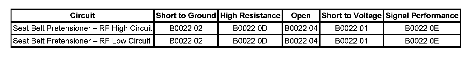 The seat belt pretensioner - RF high and/or low circuit is short to voltage for 120 milliseconds.