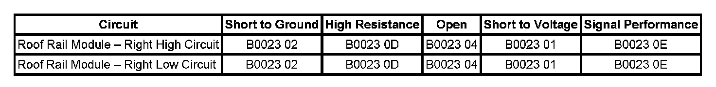 The roof rail module - right high and/or low circuit is short to voltage for 120 milliseconds.