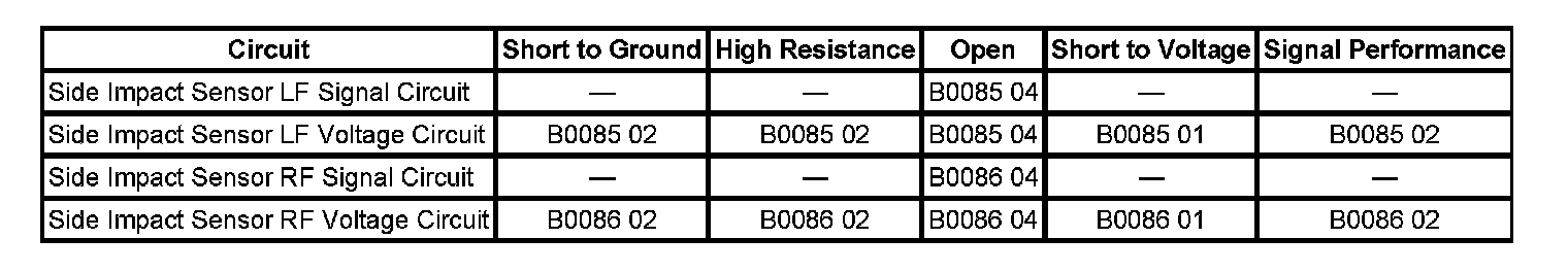 Left Front Side Impact Sensor Open Circuit