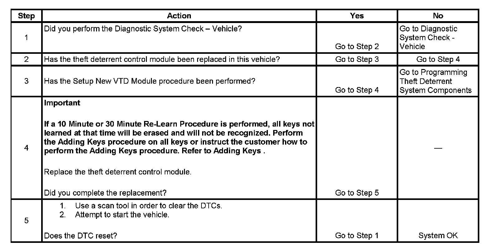- The theft deterrent control module clears the current DTC when the correct VIN information is present.