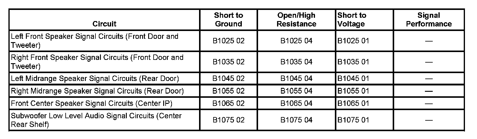The radio sets a current status for this DTC when a short to ground, short to voltage or an open is detected on any of the 6 speaker channel outputs from the radio.