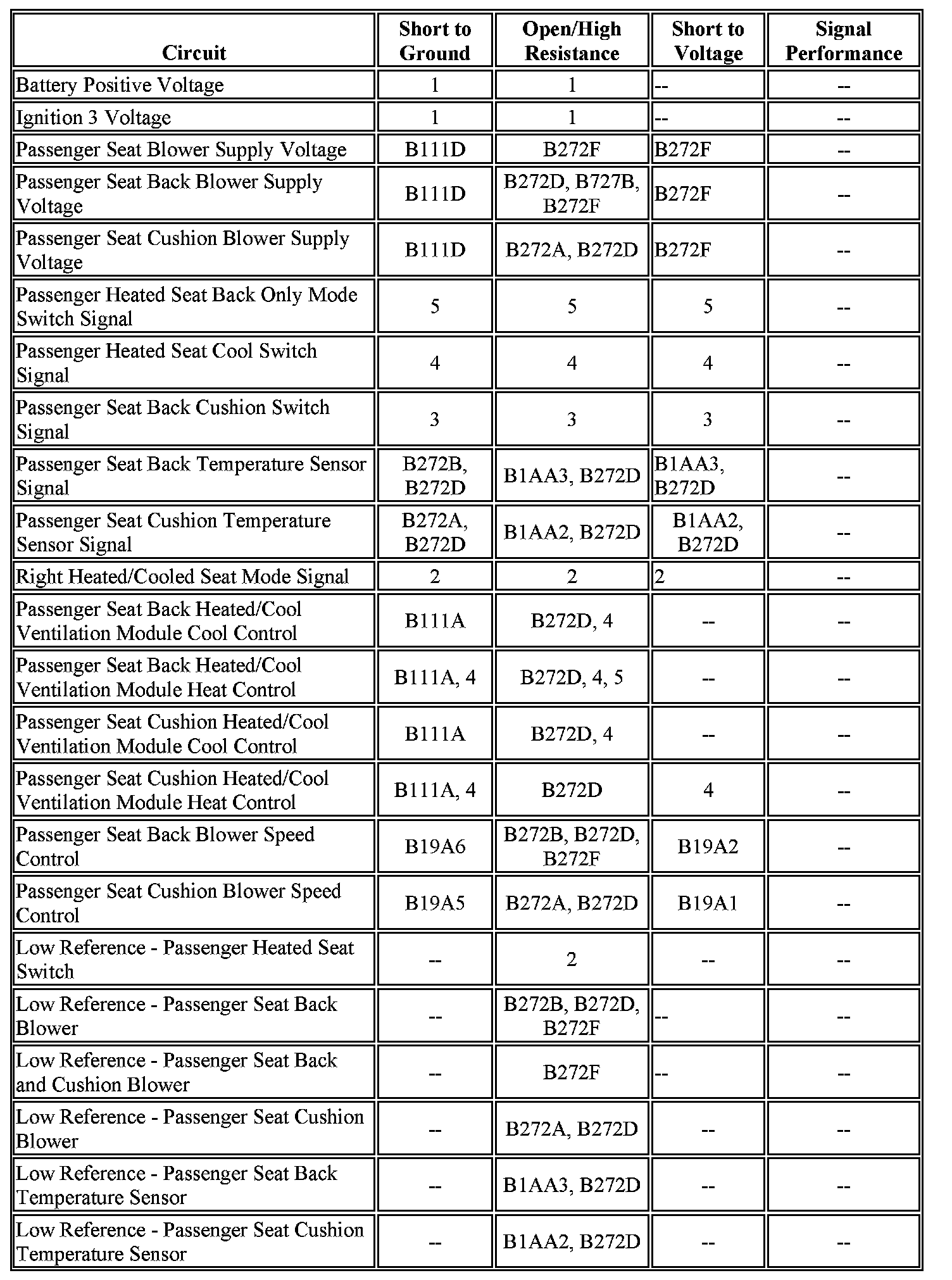 Ignition ON and the passenger heat or cool seat is commanded On.